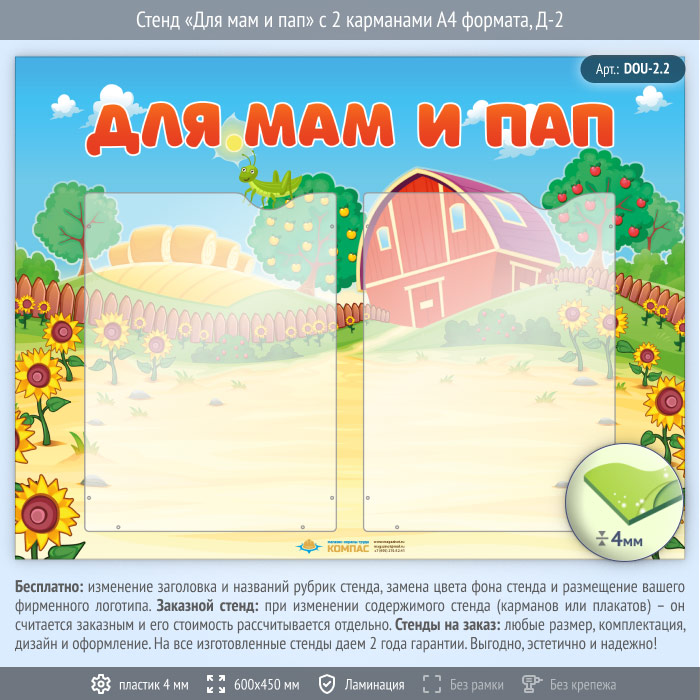 Стенд «Для мам и пап» с 2 карманами А4 формата (DOU-2.2) в Альметьевске купить