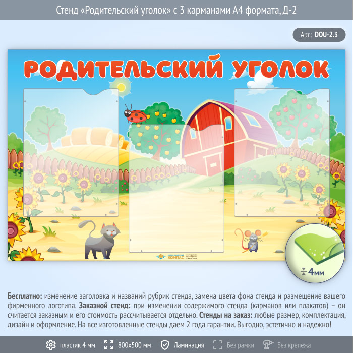 Стенд «Родительский уголок» с 3 карманами А4 формата (DOU-2.3) в Альметьевске купить