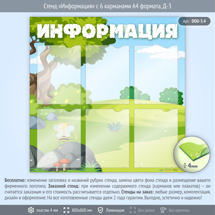 Стенд «Информация» с 6 карманами А4 формата (DOU-3.4) в Альметьевске купить