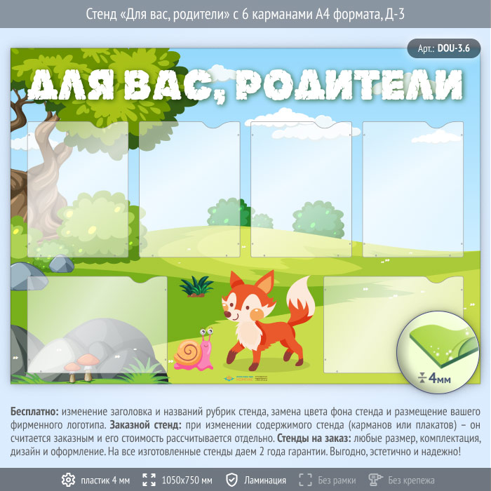 Стенд «Для вас, родители» с 6 карманами А4 формата (DOU-3.6) в Альметьевске купить