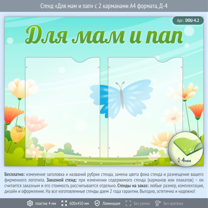 Стенд «Для мам и пап» с 2 карманами А4 формата (DOU-4.2) в Альметьевске купить
