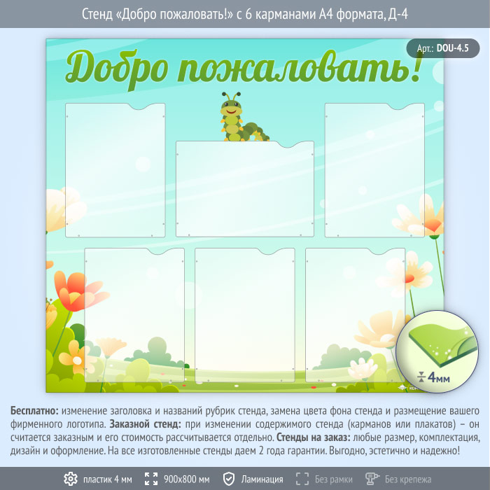 Стенд «Добро пожаловать!» с 6 карманами А4 формата (DOU-4.5) в Альметьевске купить