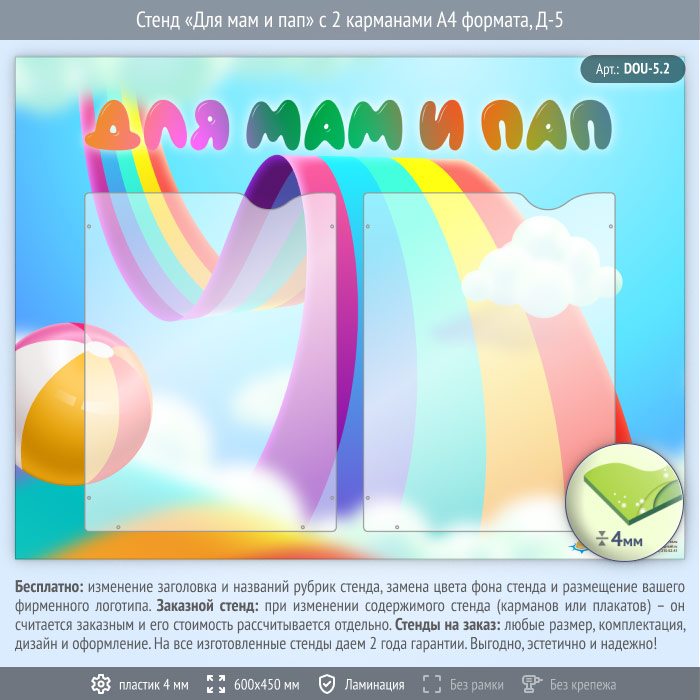 Стенд «Для мам и пап» с 2 карманами А4 формата (DOU-5.2) в Альметьевске купить