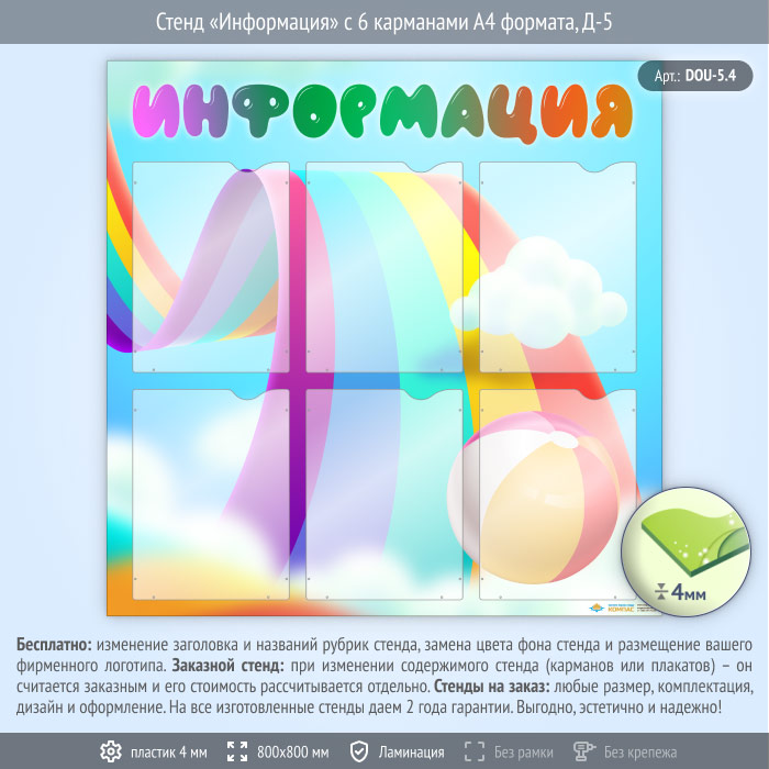 Стенд «Информация» с 6 карманами А4 формата (DOU-5.4) в Альметьевске купить