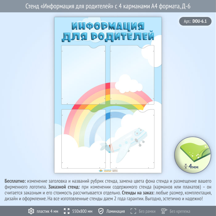 Стенд «Информация для родителей» с 4 карманами А4 формата (DOU-6.1) в Альметьевске купить