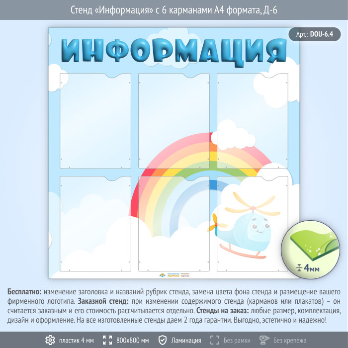 Стенд «Информация» с 6 карманами А4 формата (DOU-6.4) в Альметьевске купить