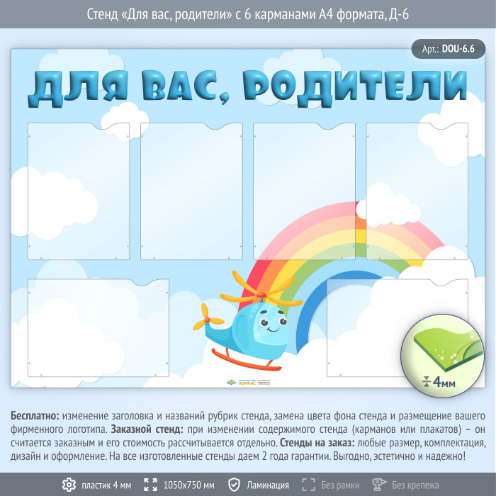 Стенд «Для вас, родители» с 6 карманами А4 формата (DOU-6.6) в Альметьевске купить
