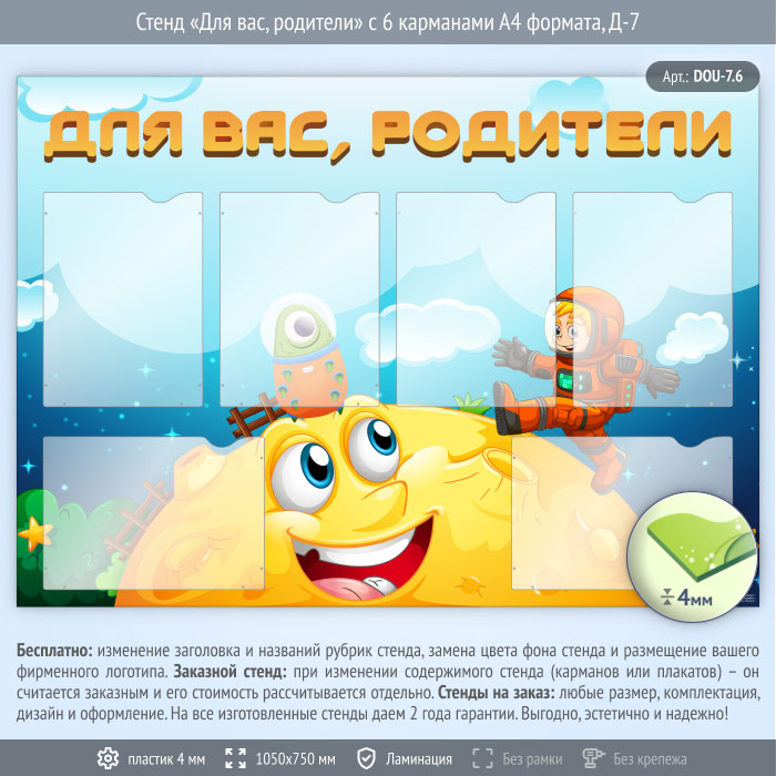 Стенд «Для вас, родители» с 6 карманами А4 формата (DOU-7.6) в Альметьевске купить