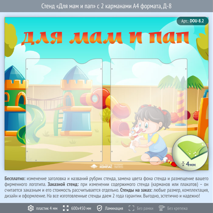 Стенд «Для мам и пап» с 2 карманами А4 формата (DOU-8.2) в Альметьевске купить