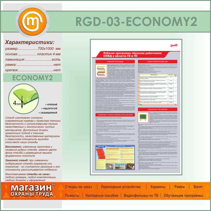 Стенд «Рабочая программа обучения работников СКЖД в области ГО и ЧС» (RGD-03-ECONOMY2) в Альметьевске купить