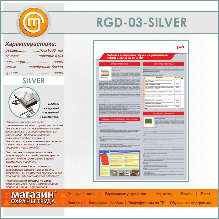 Стенд «Рабочая программа обучения работников СКЖД в области ГО и ЧС» (RGD-03-SILVER) в Альметьевске купить