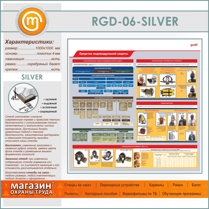 Стенд «Средства индивидуальной защиты» (RGD-06-SILVER) в Альметьевске купить