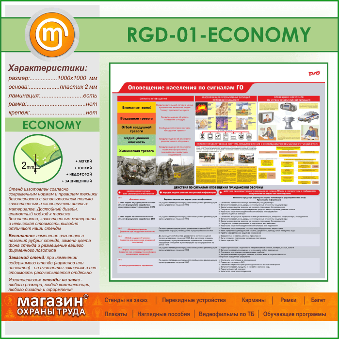 Стенд «Оповещение населения по сигналам ГО» (RGD-01-ECONOMY) в Альметьевске купить