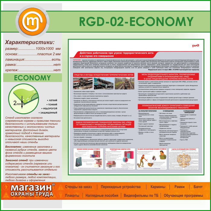 Стенд «Действия работников при угрозе совершения террористического акта и в случае его совершения» (RGD-02-ECONOMY) в Альметьевске купить