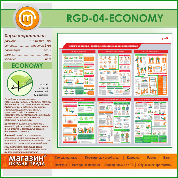 Стенд «Правила и порядок оказания первой медицинской помощи» (RGD-04-ECONOMY) в Альметьевске купить