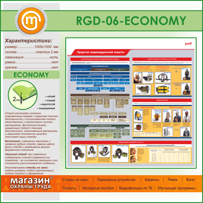 Стенд «Средства индивидуальной защиты» (RGD-06-ECONOMY) в Альметьевске купить