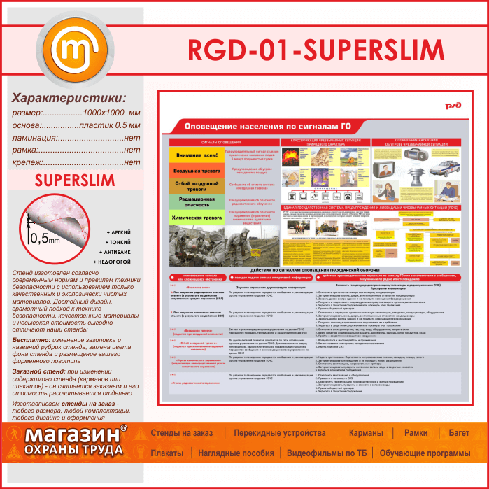 Стенд «Оповещение населения по сигналам ГО» (RGD-01-SUPERSLIM) в Альметьевске купить