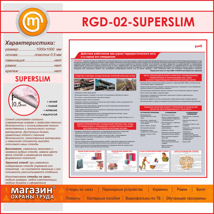 Стенд «Действия работников при угрозе совершения террористического акта и в случае его совершения» (RGD-02-SUPERSLIM) в Альметьевске купить