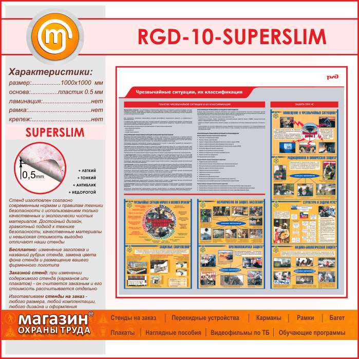 Стенд «Чрезвычайные ситуации, их классификация» (RGD-10-SUPERSLIM) в Альметьевске купить