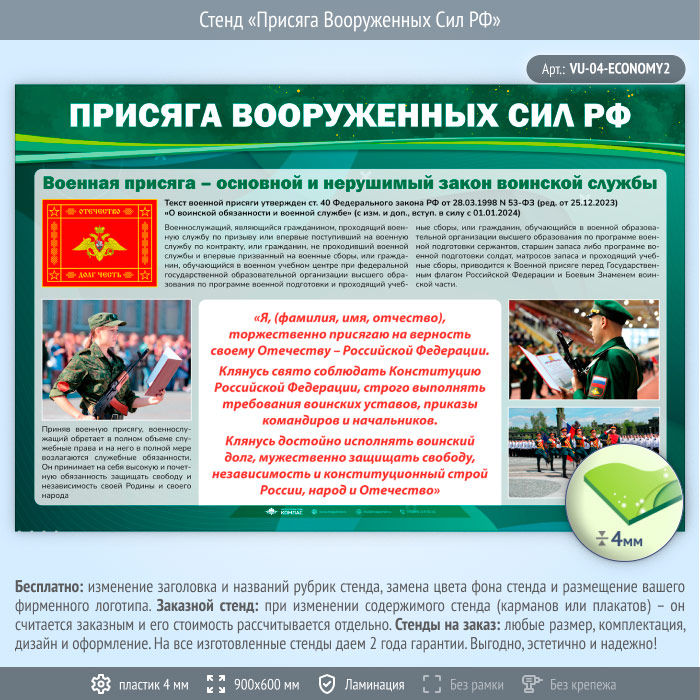 Стенд «Присяга Вооруженных Сил РФ» (VU-04-ECONOMY2) в Альметьевске купить