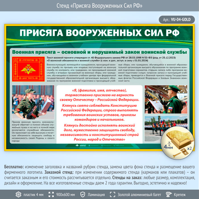 Стенд «Присяга Вооруженных Сил РФ» (VU-04-GOLD) в Альметьевске купить
