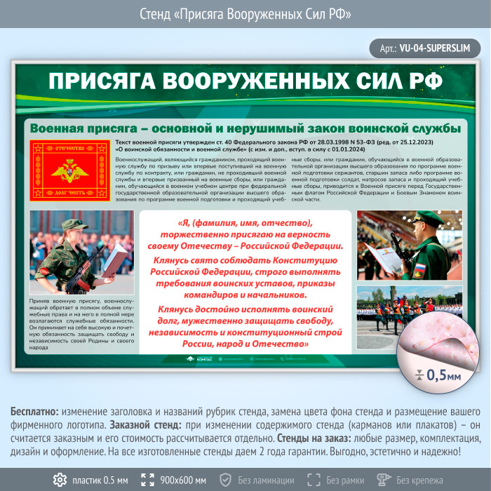 Стенд «Присяга Вооруженных Сил РФ» (VU-04-SUPERSLIM) в Альметьевске купить