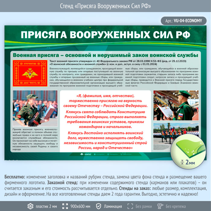 Стенд «Присяга Вооруженных Сил РФ» (VU-04-ECONOMY) в Альметьевске купить
