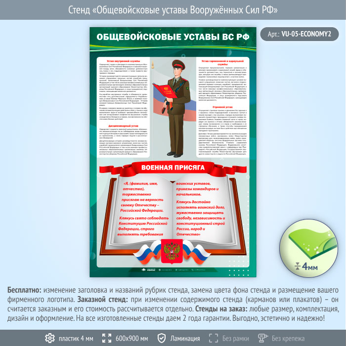 Стенд «Общевойсковые уставы Вооружённых Сил РФ» (VU-05-ECONOMY2) в Альметьевске купить