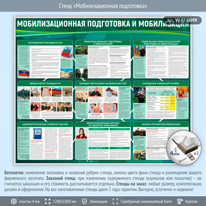 Стенд «Мобилизационная подготовка» (VU-07-SILVER) в Альметьевске купить