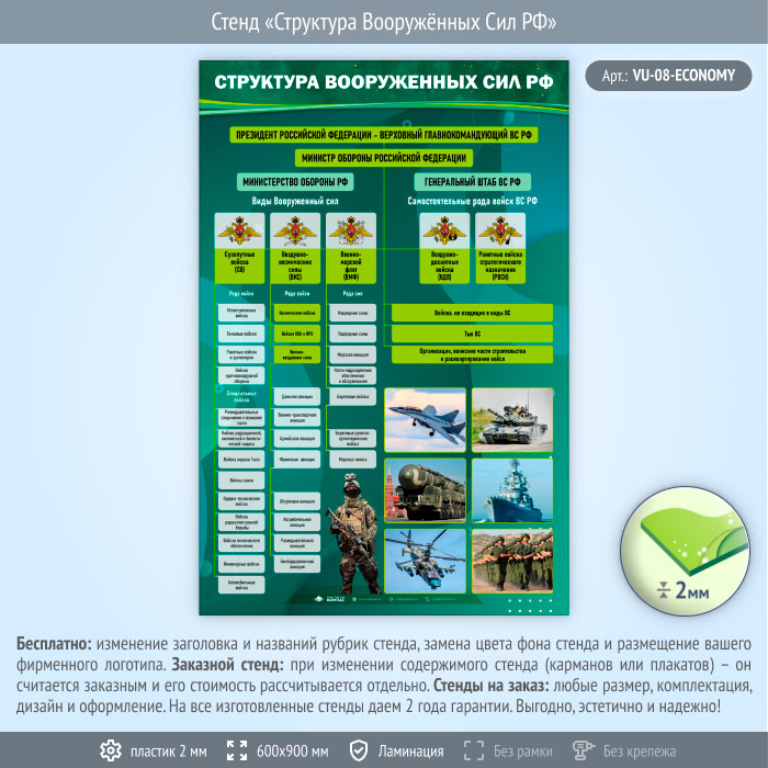 Стенд «Структура Вооружённых Сил РФ» (VU-08-ECONOMY) в Альметьевске купить