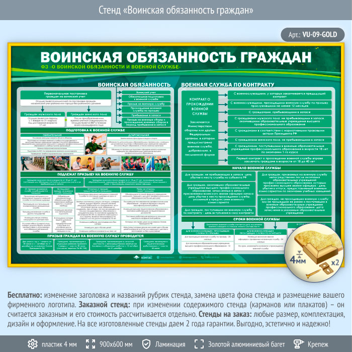 Стенд «Воинская обязанность граждан» (VU-09-GOLD) в Альметьевске купить