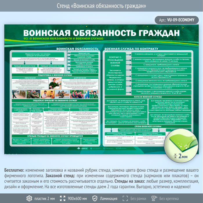 Стенд «Воинская обязанность граждан» (VU-09-ECONOMY) в Альметьевске купить