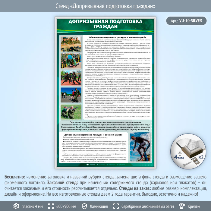 Стенд «Допризывная подготовка граждан» (VU-10-SILVER) в Альметьевске купить