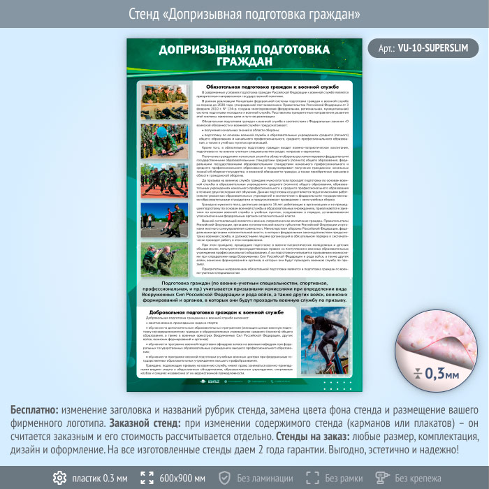 Стенд «Допризывная подготовка граждан» (VU-10-SUPERSLIM) в Альметьевске купить