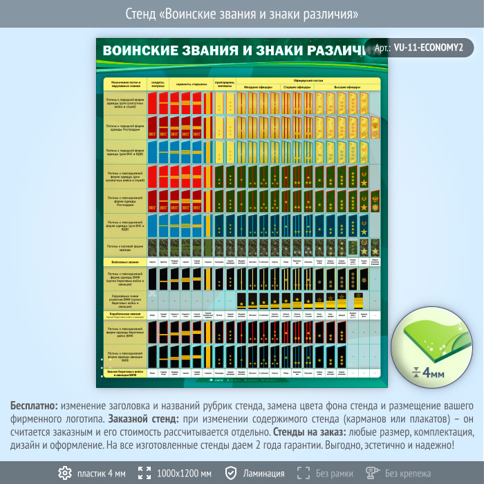 Стенд «Воинские звания и знаки различия» (VU-11-ECONOMY2) в Альметьевске купить