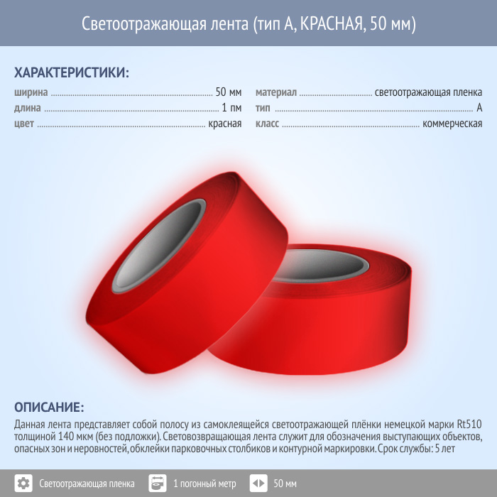 Светоотражающая однородная лента (тип А, КРАСНАЯ, 50 мм х 1 п.м.) в Альметьевске купить