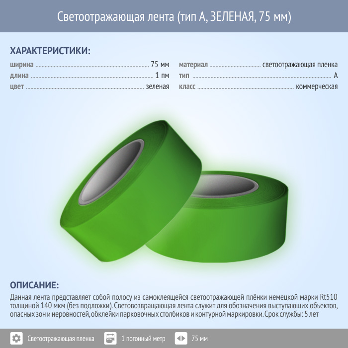 Светоотражающая однородная лента (тип А, ЗЕЛЕНАЯ, 75 мм х 1 п.м.) в Альметьевске купить