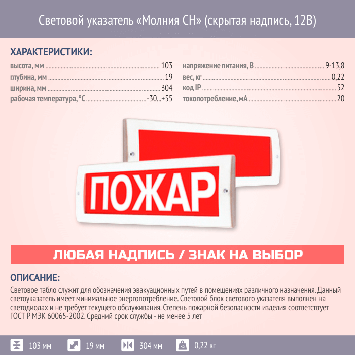 Световой указатель Молния СН (скрытая надпись, 12В) в Альметьевске купить