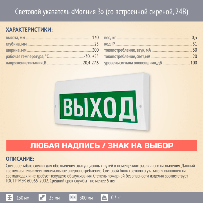 Световой указатель Молния 3 (со встроенной сиреной, 24В) в Альметьевске купить