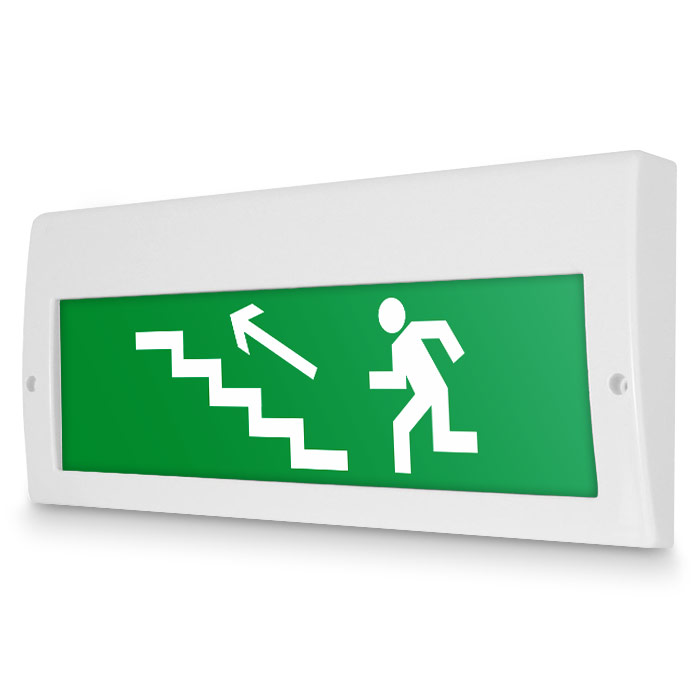 Световое табло «Направление к эвакуационному выходу по лестнице вверх (левосторонний)», Молния (220В РИП) в Альметьевске купить