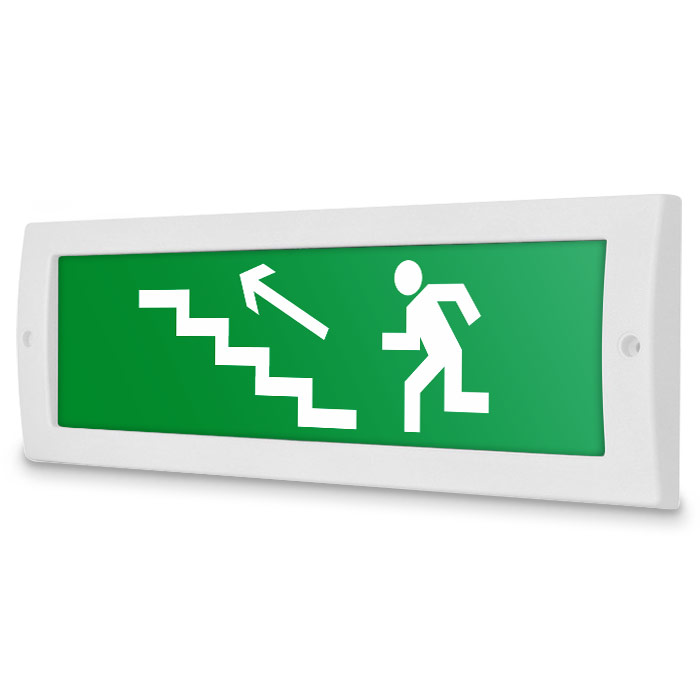 Световое табло «Направление к эвакуационному выходу по лестнице вверх (левосторонний)», Молния (12В) в Альметьевске купить