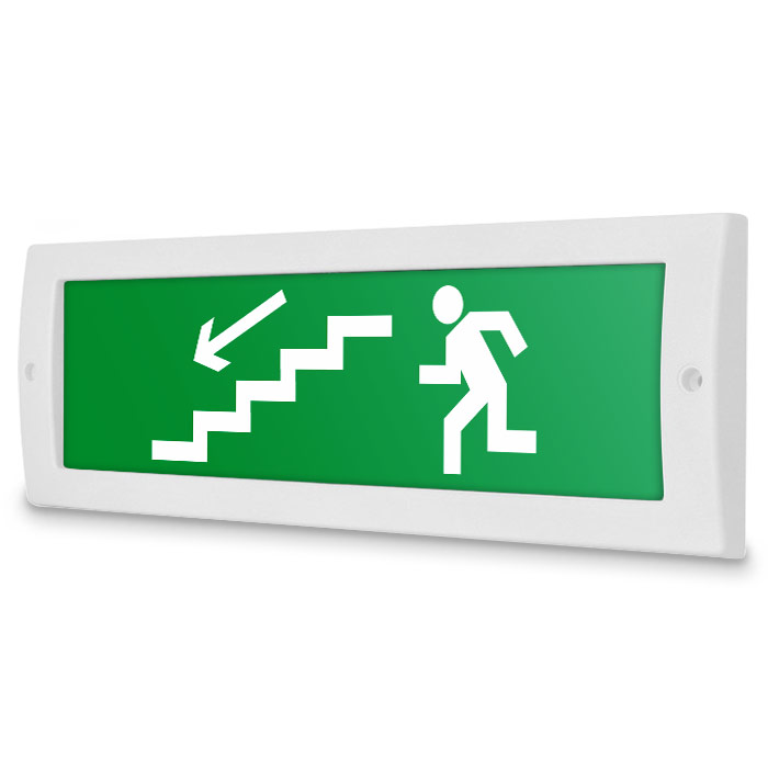 Световое табло «Направление к эвакуационному выходу по лестнице вниз (левосторонний)», Молния (12В) в Альметьевске купить