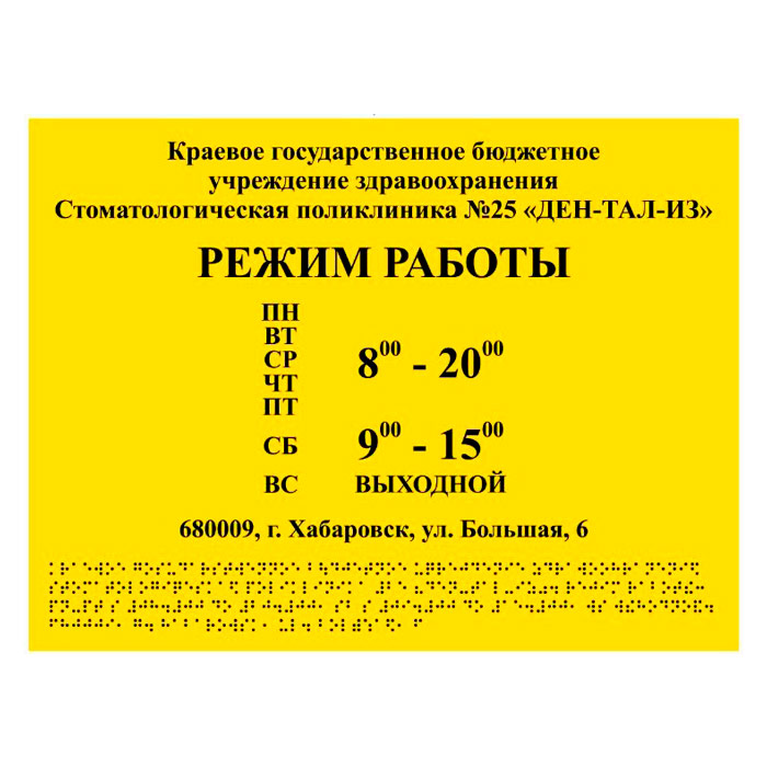 Тактильная вывеска с дублированием азбукой Брайля, ДС10 (полистирол 3 мм, 600х500 мм) в Альметьевске купить