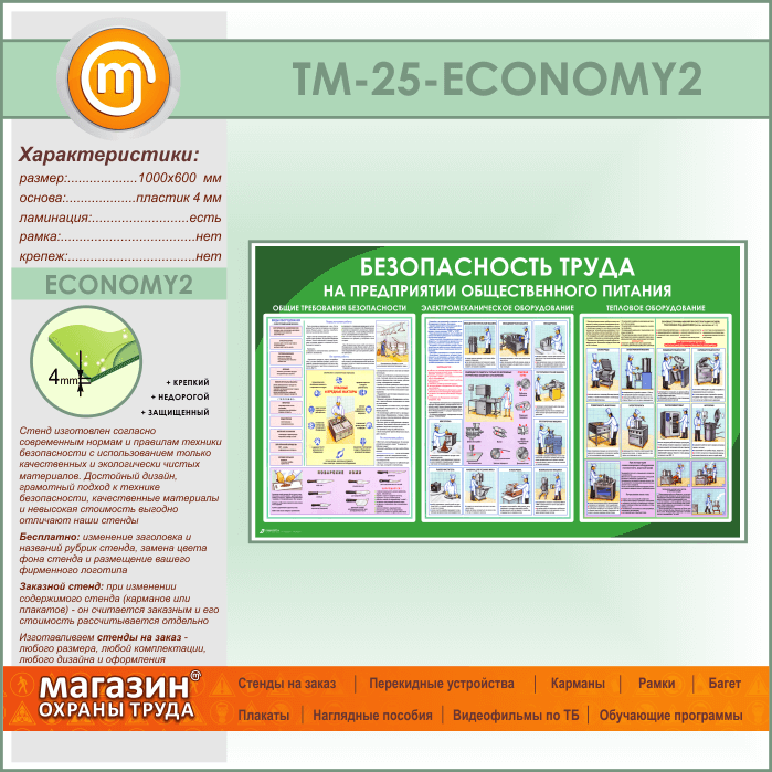 Стенд «Безопасность труда на предприятиях общественного питания» (TM-25-ECONOMY2) в Альметьевске купить