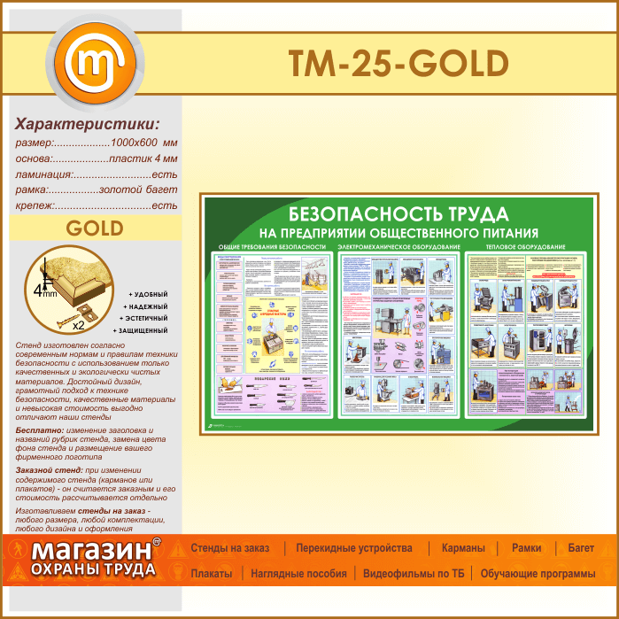Стенд «Безопасность труда на предприятиях общественного питания» (TM-25-GOLD) в Альметьевске купить