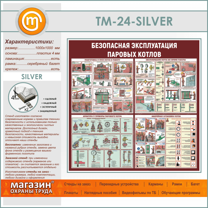 Стенд «Безопасная эксплуатация паровых котлов» (TM-24-SILVER) в Альметьевске купить