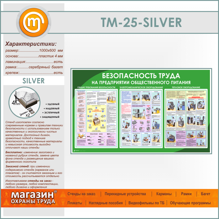 Стенд «Безопасность труда на предприятиях общественного питания» (TM-25-SILVER) в Альметьевске купить