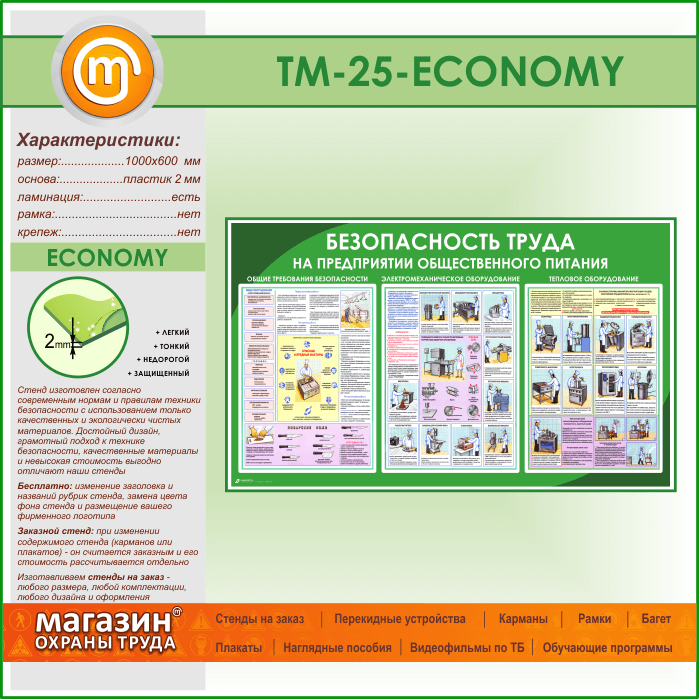 Стенд «Безопасность труда на предприятиях общественного питания» (TM-25-ECONOMY) в Альметьевске купить