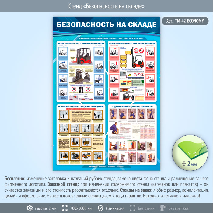 Стенд «Безопасность на складе» (TM-42-ECONOMY) в Альметьевске купить