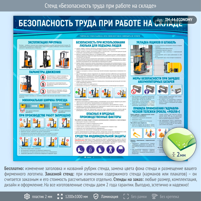 Стенд «Безопасность труда при работе на складе» (TM-44-ECONOMY) в Альметьевске купить